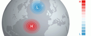 The NAO is an atmospheric phenomenon ―similar to El Niño in the Pacific― that is generated over the Northern Atlantic and determines the climate of the whole of Europe. It is caused by fluctuations in the difference of atmospheric pressure between the Azores High and the Icelandic Low. The NAO has two phases. In the first, the difference in pressure between the High and the Low is large (when both are very powerful) and the Azores High is moved westward. The second phase occurs when the difference in pressure between the High and Low is small (when both are weak) and the Azores High is displaced eastward.