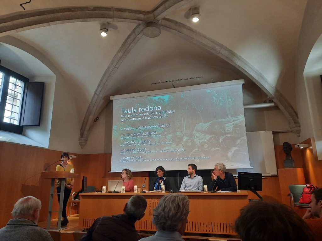 A la taula rodona, Carla Romeu, experta en comerç global, va donar les seves recomanacions sobre com treballar amb el sector privat. Seguint el model d’altres països europeus, el sector privat ha de veure com reconvertir els seus processos i fer-los més sostenibles i justos, acompanyar-lo o fer-ho de forma conjunta, administracions i empreses o actors implicats, és un camí a explorar que pot donar bons resultats. D’altra banda, Gustavo Duch, de la Revista Sobirania Alimentària, va qüestionar el sistema agrícola actual, va posar èmfasi en recuperar la ramaderia extensiva i en el decreixement o el menor consum de carn i derivats. Des de l’administració, Carla Canal va explicar les barreres que es troba l’Ajuntament de Barcelona a l’hora de fer compra pública responsable i des de la vessant més legislativa, Thomas Sembres d’EFI va comentar la nova legislació europea que ha de prohibir els productes que provinguin de zones desforestades, entre d’altres aportacions. Tots van estar d’acord amb que cal una major traçabilitat de les normes que permeten obtenir els segells de producció sostenible i que la solució al problema implica molts actors i coordinació internacional.