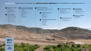 Les esmenes orgàniques, com compost, biochar, fems o fangs de depuradora, permeten millorar la fertilitat del sòl, incrementar la retenció d’aigua i fomentar la biodiversitat. Aquestes esmenes, a banda d’aplicar-les directament al sòl, també poden fer-se servir per construir tecnosols, altrament dits “sòls tècnics a la carta” o “sòls construïts”, que són recreacions artificals de sòl que s’utilitzen quan la disponibilitat de sòls naturals adequats per a la restauració és limitada. Aquesta pràctica ja s’utilitza en restauracions de mines, infraestructures de transport o abocadors, on el sòl ha desaparegut i necessita fer-se de nou per tornar a ser funcional. A més, contribueix a la bioeconomia circular ja que obre una nova via de valorització de residus (tan orgànics com minerals).