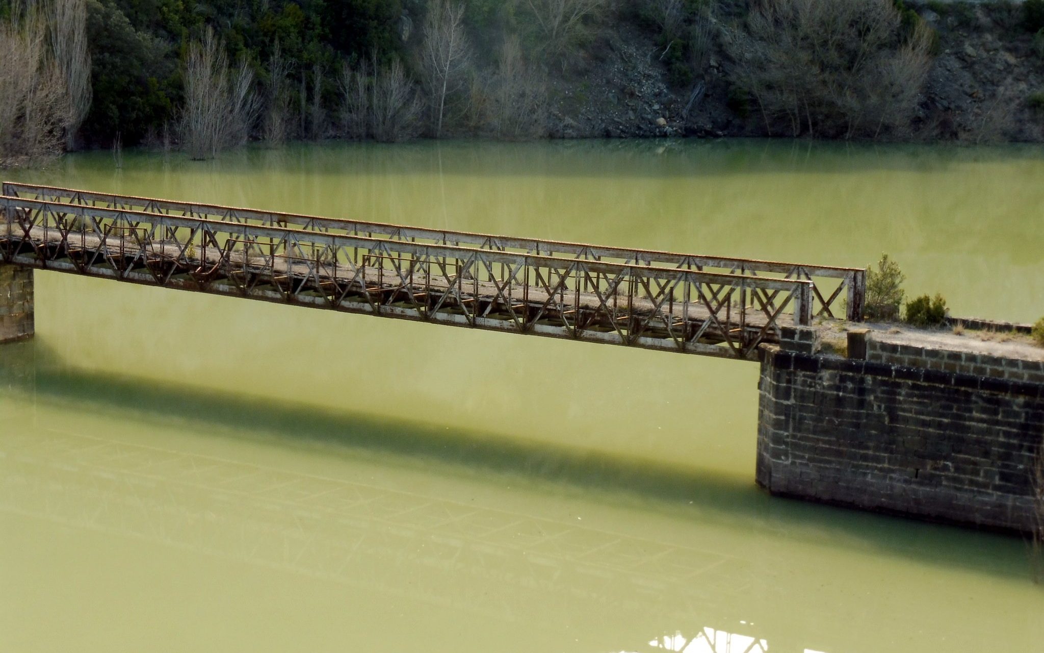 Aigua eutrofitzada en el sector palanca de l'embassament de Camarasa (Lleida). Imatge: Isidre Blanc a Wikipedia Commons.
