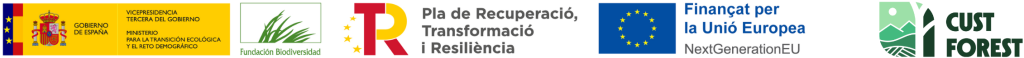 CustForest compta amb el suport de la Fundación Biodiversidad del Ministerio para la Transición Ecológica y el Reto Demográfico (MITECO) en el marc del Pla de Recuperació, Transformació i Resiliència (PRTR), finançat per la Unió Europea - NextGenerationEU.
