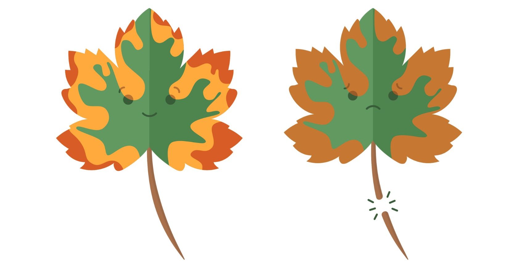 Quan hi ha sequera, els arbres no tenen tant de temps per reabsorbir els nutrients valuosos de les fulles i tallen d’emergència la connexió entre la tija i les fulles, per reduir al màxim la superfície per on perden aigua. En aquest cas, les fulles s’assequen amb tots els nutrients i els pigments, passant directament del verd al marró sec, sense la variació cromàtica típica.