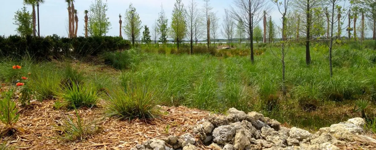 Una altra acció que cal tenir present és implementar sistemes de drenatge sostenible (SUDs). Per exemple, hi ha paviments que imiten al “sòl natural” i són permeables. També es poden construir llambordes intercalades amb vegetació o blocs de formigó amb espais que ajudin a reduir el volum d’aigua. Un altre exemple enfocat a l’aigua són els ‘jardins de pluja’, construccions enmig de la ciutat que tenen una lleugera depressió amb plantes i que s’omplen d’aigua quan plou; aquests jardins es componen d’espècies de plantes resistents tant a la sequera com a l’excés d’aigua. Un altre cas de SUDs són les zones humides urbanes, àrees inundades de forma controlada on s’utilitzen plantes aquàtiques per filtrar l’aigua de l’escorrentia quan plou, plantar vegetació als marges dels carrers o promoure els sostres verds per canalitzar i filtrar la pluja.