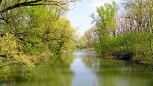 Riu amb bosc de ribera. Imatge de domini públic
