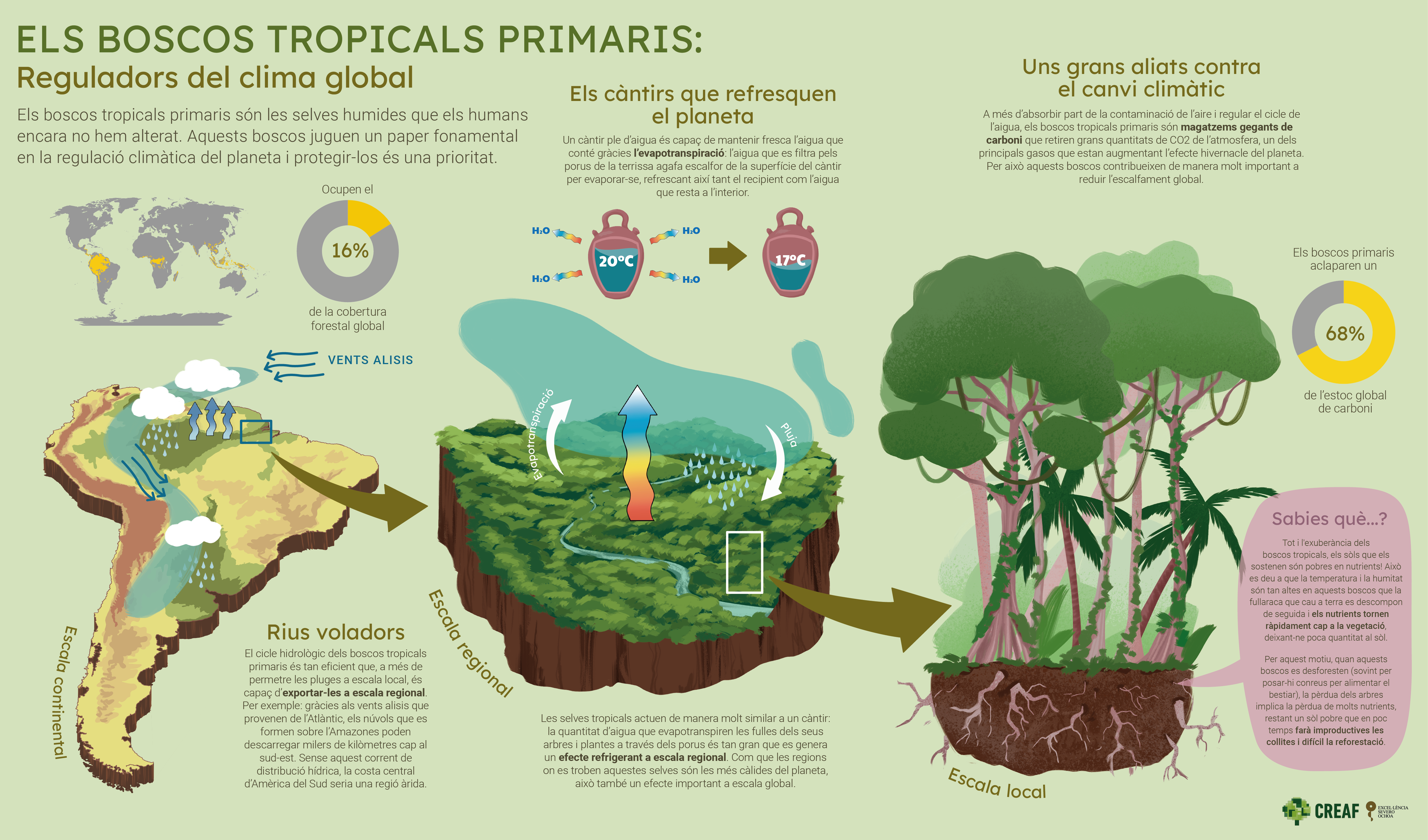 Els boscos tropicals, per la seva dimensió i quantitat d’aigua evaporada, refresquen aquestes zones tropicals i mitiguen l’escalfament de la superfície.