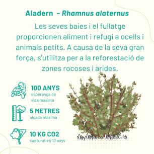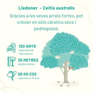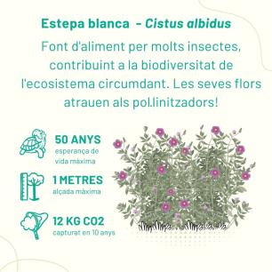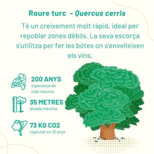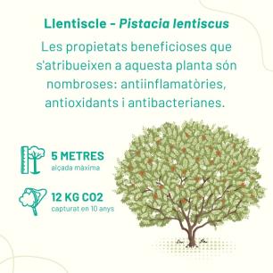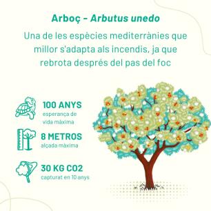 Hem triat espècies que podríem trobar perfectament en el bosc mediterrani i les agruparem seguint un disseny per grups d’espècies, requisits d’ombra o d’aigua; així farem que aquesta zona verda sigui més resilient davant del canvi climàtic