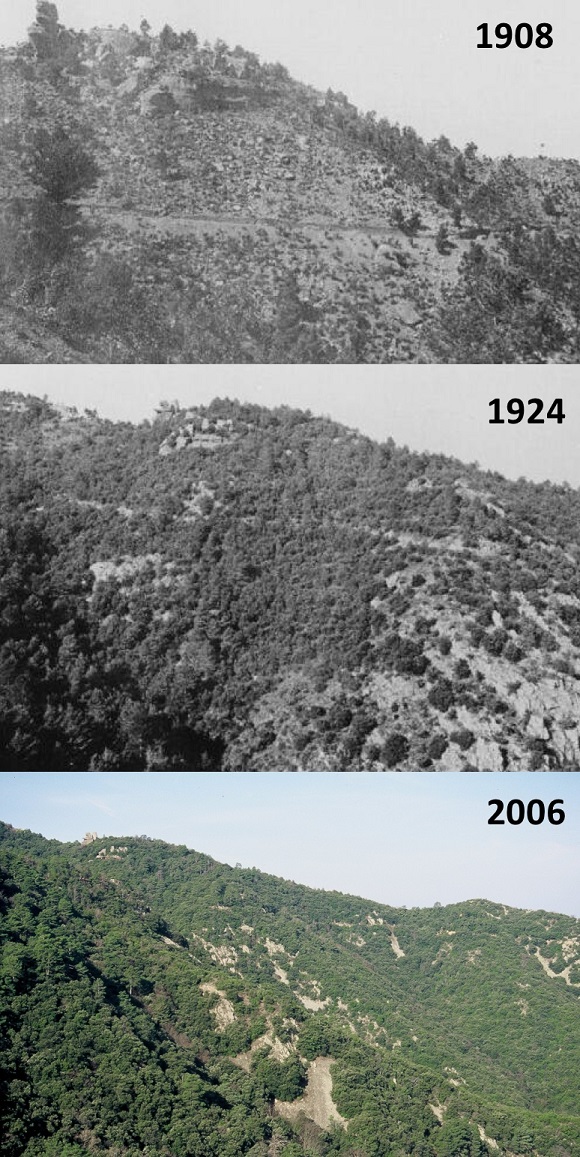 Cent anys després, cal reconèixer l'èxit de l'actuació dels enginyers austrohongaresos. Sota un dosser dispers de pins de fins a 20 metres d'altura s'ha desenvolupat un dens sotabosc de roures, freixes, carpins i aurons. La regeneració dels pins és escassa, però el dosser de frondoses es regenera bé. Es fa difícil imaginar-hi un paisatge dominat per la roca viva, sinó fos per les fotografies que ens han quedat de principis del segle XX. Aquesta història il·lustra com es poden aprofitar les pròpies forces de la naturalesa per a la seva conservació. Es tracta del clàssic principi ecològic que explica la successió vegetal com una seqüència de reemplaçament d'espècies en què una espècie transforma el medi i el fa més favorable a altres espècies. Els col·legues del departament d'Ecologia de la Universitat de Granada han aplicat el mateix principi a una escala més modesta proposant els arbustos mediterranis, fins i tot de petit port, com mainaderes facilitadores de l'establiment d'arbres.