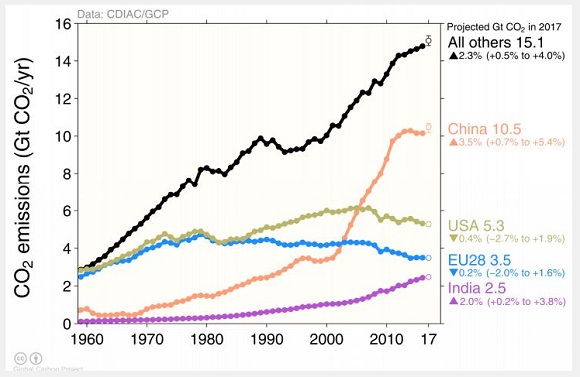 Fossil fuel emissions hit record high after unexpected growth: Global Carbon Budget 2017