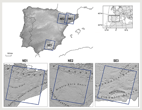 To understand the trends of change in Iberian woodlands, the study analysed three regions of the peninsula. The researchers used images from the Landsat satellite, a drought database for the Iberian Peninsula (using data calucated from climate models developed by UAB professor Miquel Ninyerola), and included a large number of other environmental variables and computational statistics. Two of the study zones are from the northeastern part of peninsula: one includes much of Catalonia and the other Aragón, with a slight overlap (due to coinciding satellite orbits), and both zones reach into the Pyrenees. The third, located in Andalusia, includes Sierra Nevada and much of the Penibaetic system.