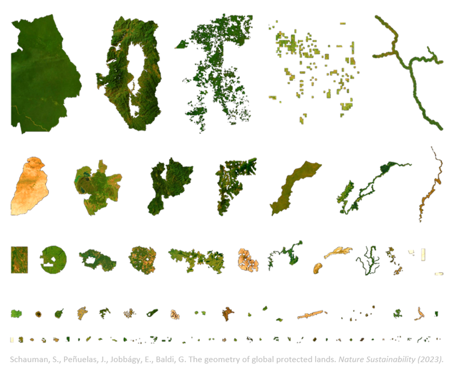 Schauman, S., Peñuelas, J., Jobbágy, E.G., Baldi, G. 2023. The geometry of global protected lands: implications for nature conservation and human well-being. Nature Sustainability.
