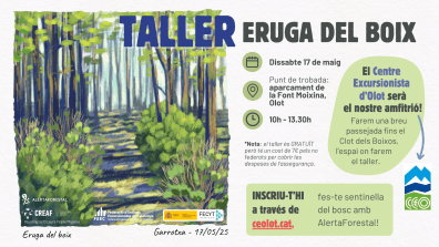 Inscripcions obertes aquí: https://ceolot.cat/activitats/taller-apren-a-identificar-leruga-del-boix/