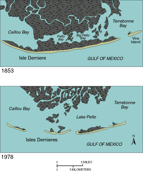 A lo largo del siglo XX, se drenaron humedales para permitir el crecimiento urbano, pero la subsidencia, en parte natural y en parte inducida por la actividad humana, hacía que se inundaran los nuevos barrios. En las décadas de 1980 y 1990, ya se vio que la erosión rápida de las zonas de humedales generaba una situación de riesgo. En 1995 se incrementó el esfuerzo de bombeo, que se mostró insuficiente en varias ocasiones, pero el Katrina (agosto de 2005) destrozó el sistema de prevención con muros y esclusas, sobre todo dos que eran esenciales para la protección de los barrios más bajos, donde básicamente vivían negros pobres. Murieron 1.800 personas, muchas tuvieron que marcharse, y los daños materiales se calculan en 108.000 millones de dólares. Dos años después, la población de la ciudad era poco más de la mitad de la anterior al huracán, pero se ha ido recuperando. Sin embargo, el nivel medio de la ciudad está entre 30 y 60 cm bajo el nivel del mar (que va subiendo, como resultado del deshielo debido al calentamiento) y la subsidencia continúa, en parte por compactación natural pero también por el bombeo de agua freática y que los sedimentos han dejado de llegar.
