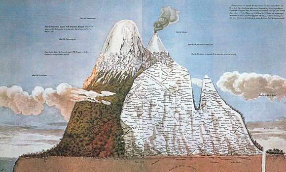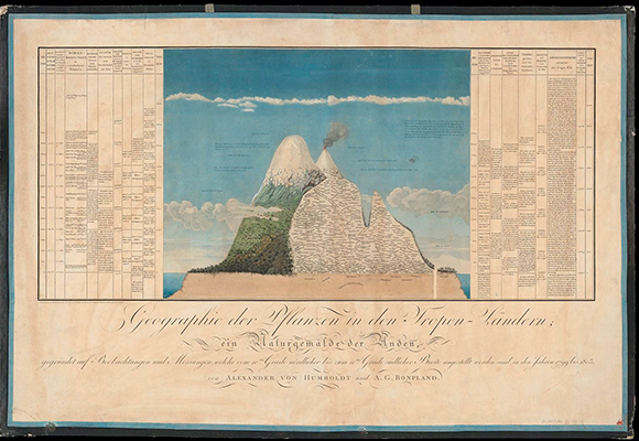La cartografía detallada de orografía, costas y masas de agua, así como de vías de comunicación, alcanzó su plenitud en los siglos XIX y XX. En esa época, se constituyó en una herramienta bélica y de dominio territorial imprescindible, tal y como reconoció el ilustre geógrafo Yves Lacoste. Por su parte, los naturalistas pronto utilizaron los mapas para describir grandes unidades de vegetación y para interpretarlas. Alexander von Humboldt publicó en su Geographie der Pflanzen, en 1807, un icónico diagrama - Naturgemälde - de la distribución de la vegetación en las laderas del volcán del Chimborazo, que se considera la primera descripción ecológica del paisaje vegetal (Figura 2). Desde el siglo XIX, la botánica y la zoología han venido interpretando la distribución de las especies en el territorio, desarrollando la disciplina de la corología. Para ello, se realizaban cartografías de los lugares en los que se habían encontrado los especímenes, y se interpretaban los patrones, dando una particular relevancia a los procesos históricos y evolutivos. Surgió así la Biogeografía, una importante disciplina a caballo de la historia natural, la evolución y la ecología, que trata de la distribucion espacial de especies y taxones, junto a la interpretación de los procesos que los han generado.