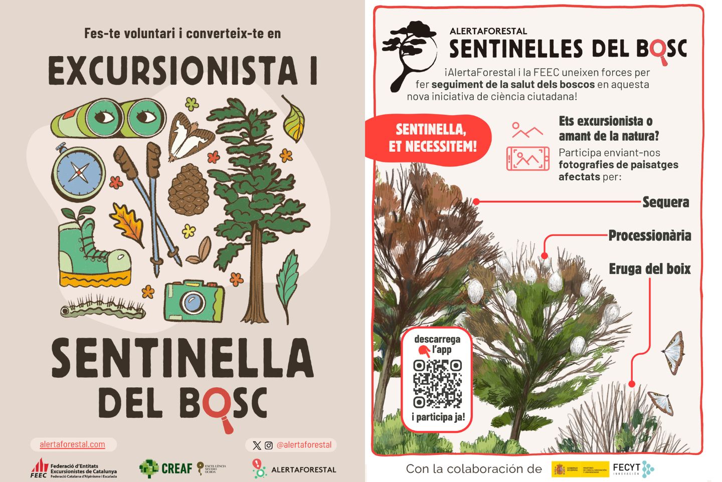 Las personas que aman la naturaleza y que hacen excursiones por el bosque suelen ser grandes observadoras: miran los árboles, se dan cuenta si les han caído las hojas, ven cuando la procesionaria está comiendo los pinos o que unas orugas verdosas mordisquean los bojes. Por eso, el CREAF y la Federació d’Entitats Excursionistes de Catalunya (FEEC) quieren aprovechar este buen ojo de los excursionistas para integrarlos dentro de la iniciativa de ciencia ciudadana AlertaForestal, que sigue el estado de salud de los bosques desde el 2017. El nuevo proyecto recibe el nombre de 'Sentinelles del bosc', el cual está financiado por la FECYT y permitirá que las personas mayores observadoras de la montaña puedan participar en talleres y envíen fotografías cuando hacen excursiones de bosques afectados por sequía, oruga del boj o procesionaria en la web-app de Alerta Forestal. Al mismo tiempo, estas personas tendrán la posibilidad de participar en talleres y recibirán formación por parte de los expertos y expertas sobre algunas de estas problemáticas de los bosques de Cataluña.