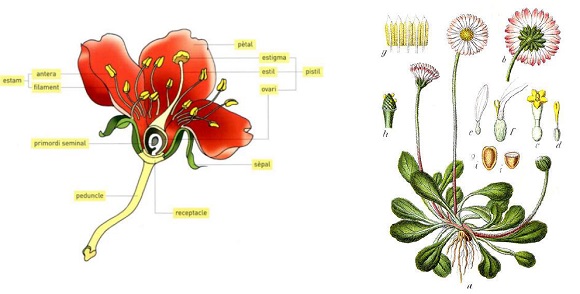 Avanzamos con nuestro tren de la ecología y, mientras dibujamos flores y mariposas hacemos parada en una clase de primaria de Caldes de Malavella donde hoy se explican las partes de una flor. Seguro que a todas nos viene a la cabeza la foto del típico esquema de las partes de una flor que nos enseñaron para aprenderlas de memoria. Y ahora os planteo el siguiente ejercicio, en la línea de los que hemos venido comentando: observa la flor más cercana que tengas y determina sus partes. Te puedes ayudar de una lupa y de un trozo de papel para dibujarlas y identificarlas. ¿Encuentras todas las partes del esquema del libro que recuerdas o que has encontrado en Google? No, ¿verdad? ¡Dependerá de la flor que hayas cogido, pero probablemente no estén todas las partes! Porque la naturaleza es diversidad y no todas las flores son como las del esquema memorizado de nuestro libro. ¡Así que aprendimos unas partes que en la mayoría de los casos no sabemos observar en la realidad!