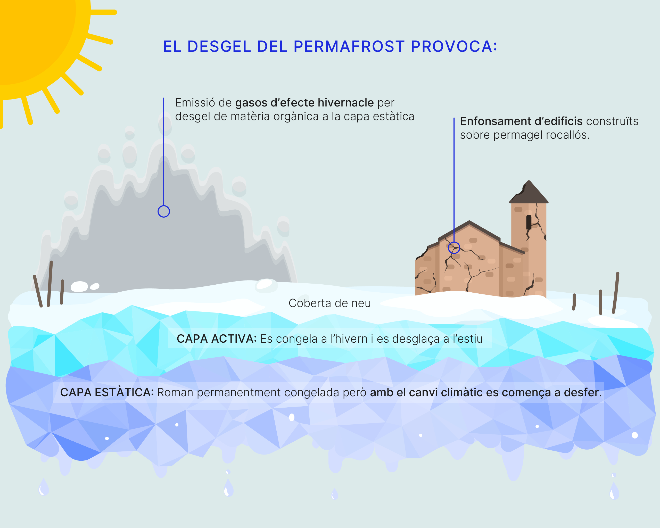 A menudo nos imaginamos el permafrost como suelo congelado propio de las zonas polares. Nada más lejos de la realidad, también en Catalunya podemos encontrarlo en la zona del Pirineo y está en pleno estudio. ¿Cuál es el motivo? Más allá de la curiosidad científica y del patrimonio natural, la búsqueda del permafrost en Catalunya nos permite realizar un seguimiento más completo de los efectos del cambio climático en la alta montaña. Y es que si se deshiela este suelo tan preciado, ¡las emisiones a la atmósfera se multiplican! Además, se pueden producir derribos de edificios y deslizamientos a rutas de excursionismo y alpinismo.