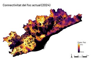 En este sentido, los expertos del CREAF han estudiado los usos que se le da a los suelos del territorio (si es un suelo urbano, bosque o cultivos) y la conectividad del fuego en caso de incendio ahora y hasta el año 2050 teniendo en cuenta el aumento previsto de episodios de sequía. “Las zonas de cultivo cerca de los núcleos son las que mejor rompen la conectividad del fuego y actúan como un cinturón que protege mejor la zona urbana. Así, si llega un incendio, quemará más despacio”, indica Balaguer-Romano. En el caso de la región metropolitana de Barcelona, los datos apuntan que la recuperación de 17.000 tiene que cultivos y pastos abandonados en los últimos años junto con la transformación de las zonas forestales propensas a los grandes episodios de sequía permitiría disminuir un 30% de media la conectividad del fuego en caso de incendios.