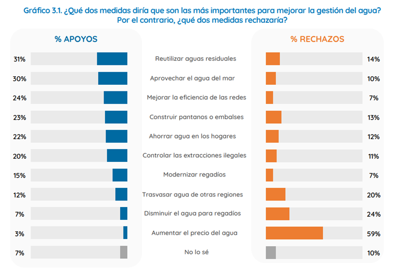La sociedad española piensa que la tecnología puede solucionar la crisis del agua o que el agua que no se utiliza y llega al mar es un desperdicio.